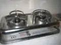 The pilot study in Ethiopia trialled two-burner Origo stoves, but one-burner models are now used for the refugee camps because they can accommodate larger pots. The stove body, approximately 290 mm wide by 240 mm deep by 160 mm high for the one-burner model, is constructed from stainless steel. Close attention is paid to safety (for instance, no sharp edges) and durability (careful welding and riveting), giving a working life of 10 to 15 years for leisure use, and a predicted 5 to 10 years for daily use in Ethiopia. The fuel canister clips securely under the stove body. The only moving part in the stove is the regulator, which slides a cover on or off a hole in the top of the stove body, and thus over the opening in the top of the ethanol canister. This regulates the supply of ethanol vapour to the flame. In the closed position the regulator blocks the ethanol from evaporating. On the top of the stove there is a heat spreader and pot stand.