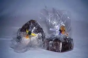 The cocoa powder is taken from the press as a cake. It is broken in a mill. The resulting powder is sieved through fine silk, nylon or wire mesh. Most cocoa powders are made from mass which has been treated with alkali with the purpose of controlling the colour of the powder and improving the dispersability.