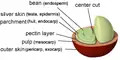 Hulling: The dried cherry is then hulled to remove the pericarp. This can be done by hand using a pestle and mortar or in a mechanical huller. The mechanical hullers usually consist of a steel screw, the pitch of which increases as it approaches the outlet so removing the pericarp.