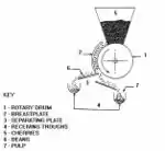 The same concept is involved with the disc pulper except that the pulp is removed using abrasion by a rough disc.