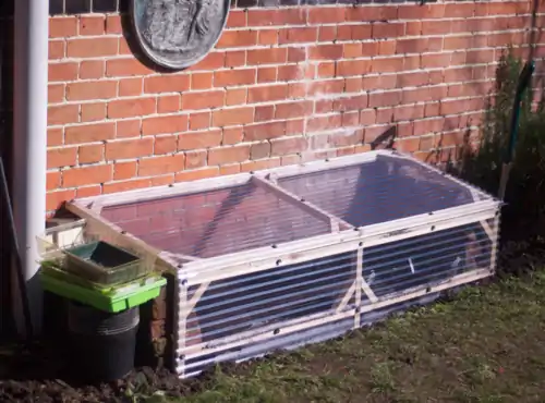 A cold frame (also known as a hotbed) is a way of growing young plants during the cold end of winter or start of spring, keeping them warm to give them a chance to survive and thrive despite the cold. A cold frame consists of a wooden box with a glass lid that can be opened and closed with ease. The cold frame acts as a mini greenhouse which can be opened to take advantage of the day's heat and closed to keep the warmth in at night.