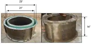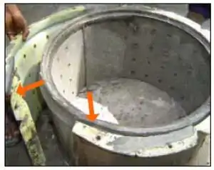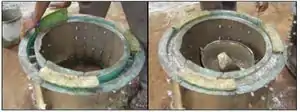 If rapid hardening cement was used, the mould can be removed after 24 hours. Special care should be taken to remove the moulds from the concrete rings. Inner mould should remove first to minimise possible damage.