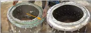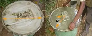7. Once the mould is filled up to 1-1.5” from the top level-place 2nd iron ring as first ring (Plate10).