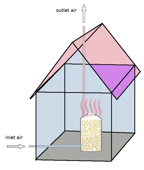 Compost Heater Silo inside a Building