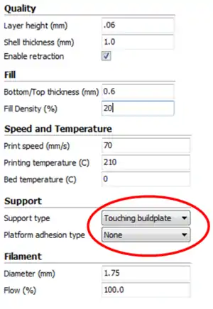 - In the Expert Configurations, I suggest increasing the "Distance Z" to .20-.30 to allow the supports to be disconnected easier and leave less residue on the printed model