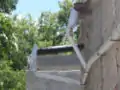 The second design had cones made of flexible 4" PVC inserted into the collectors to increase the collection area. We also covered the openings with a fine mesh to keep out flakes of paint and cement. When we tested this the catchers worked well but the mesh didn't self clean as we had hoped and caused water to run off insead of passing through.