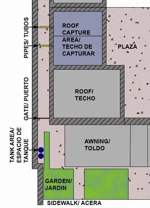 - El tercer propósito que tenemos es proporcionar un prototipo para otros sistemas para capturar el agua de lluvia en Parras. Este sistema va a ser muy visible a la gente que viene a El Nuevo Sol, y la esperanza es que muchos se inspirarán para crear uno para sus propias casas. Queremos construirlo en una manera que sea simple y fácil reproducir.