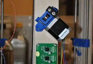 - The vertical board with a greater number of holes in it should be mounted on the Y vertex, nearest where wires exit from the motor and idler end assemblies. It should be mounted such that the additional holes are near the motor end assembly.