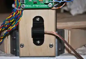 - Invert the printer and with the vertical board loosely secured with screws on the idler end, press indentations into the vertical board this time on the motor end.