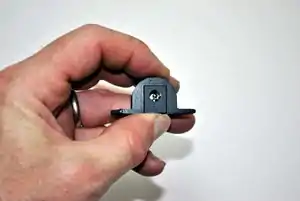 Insert Bowden sheath. - Slide the barrel connector into its housing with the connector closest to the top of the housing as shown in the picture.
