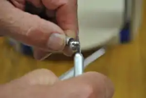Removing excess epoxy from ball bearings. - Dip each ball bearing in white lithium grease, leaving just a small amount on the ball bearings.