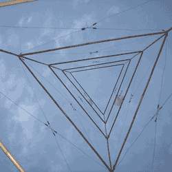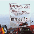 How to build the unitsDue to its light weight, bamboo is an ideal material for Democamp construction. Put together bamboo rods that are 2.1 meters long with diagonal wire connections. The bamboo rods are easy to transport and can be put together in minutes at the edge of a demonstration. The single units need to be constructed ahead of time out of wire and bamboo. The basic structure always remains the same, but it can be transformed easily into many different forms. Four people can sleep in each unit and it is high enough that a person can stand up inside of it. If you prefer to build the unit as a square rather than a triangle, it can be used as an improvisational office or room. If the unit is covered with heat-blocking foil, it can be used as a place to recover from sunstroke. Three people can easily assemble a unit, one standing on each corner. In addition, if the unit were to unexpectedly fall on a crowd, injuries would be minimal due to the lightness of construction. Translated by User:Philip93944 |