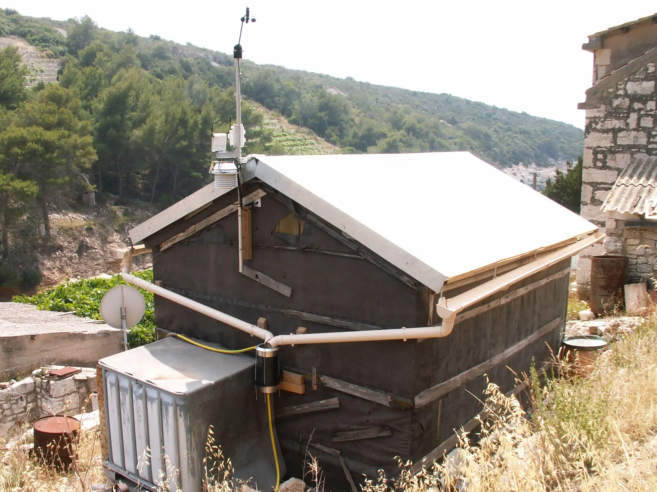 Many of the local buildings use corrugated galvanized iron (GI) sheets for roofing. So, they did their testing on such a roof with an 18m2 surface area. There were 74 days during which dew formed, and a total of 113.5L of dew water collected.