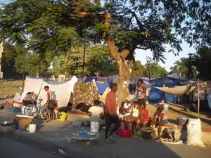 Survivors of natural disasters, such as the 2004 tsunami in the Indian Ocean and the 2009 earthquakes in Haiti, are left homeless. As a result victims will construct shanty camps, neighborhoods, and towns to fit the need of shelter[1]. These camps are crowded and typically very unclean[2]. Residents live at ground level with the camp's sewage, garbage and debris from the disaster[3]. These living conditions cause the spread of disease and can contaminate living conditions for an entire family[2][4]. Further natural forces such are wind and rain can batter and demolish these make shift encampments, causing more deaths, disease and hardship[5].
