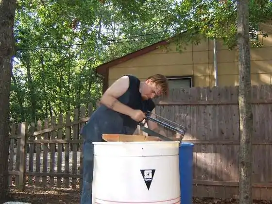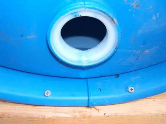 Make sure the pipe fits and rests comfortably on the barrel. Also, I used a piece of wire nailed to the barrel brace to hold the new drain in place.