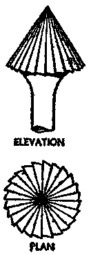 The angle of the drill tip is selected in relation to the hardness of the material on which it is to be used. A more acute angle can be used on soft metals than on very hard kinds. Thus, a 45 to 60 degree angle is a better cutting angle for cast iron than is the more general 59 degrees. An angle of 45 degrees is also more suitable for brass, although special drills may be obtained for brass which have their flutes straight, in addition to having the smaller cutting angle. Soft metals, such as copper or aluminum, are best cut with a drill having a cutting angle of 90 degrees and made with a small pip to act as a guide, as shown in Fig. 4.