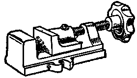 A small vise, such as shown in Fig. 13, should be used with bench drills to keep the work stationary. The vise is bolted to the base of the drill.