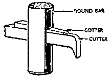 Fig. 7 shows another variety of the flat-ended drill that is used for recessing an existing hole to accommodate a bolt head or cheese-headed screw. The pin on the drill must be of the same diameter as the hole to be recessed. Large holes in thin metal are best cut by using a cutter and bar, the principle of which is shown in Fig. 8. A small hole is drilled first, and the center rod revolves in this; the cutter is then adjusted to the correct radius and the wedge-cotter tightened.