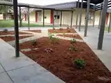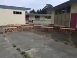Benches that meet the students seating needs in an outdoor classroom environment.