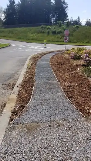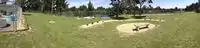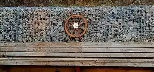 Upgrading the pirate themed agricultural area replete with gabions, rope, and a ship wheel to include safe, less muddy, seating for 35.