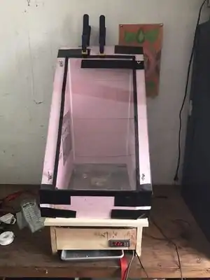Desalination Device used to capture condensation to display the change from evaporated water to condensed water