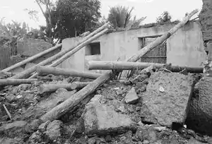 • nailing of roofing material to roof-beams; tying of beams and columns with roof wires to guard against strong winds and earth movements.