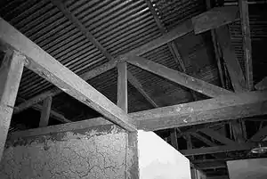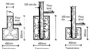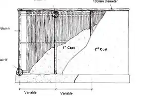 • wooden columns treated with tar or pitch to protect against humidity, concreted into the ground with nails embedded in the wood at the base to give extra anchorage.