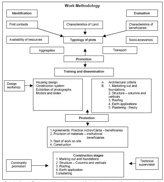 With financial support from the British Embassy and the Overseas Development Administration of the United Kingdom (now the Department for International Development) backed up with technical documentation from university researchers and photographic evidence of houses built in Huacucho, Duval Zambrano and Hermelando Aliaga, of Practical Action, set about consultation exercises with the 5000 inhabitants of Soritor.