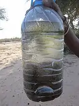Coloque estrume dentro da garrafa, enchendo-a um terceiro, 1 / 3
