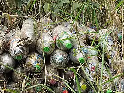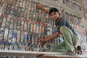 There has been a drastic rise in the use of plastic bottles over the past couple decades. Ecoladrillo allows otherwise discarded plastic bottles and trash to be used as a raw material for building construction. Figure 1 is a picture of trash that has become common throughout many parts of the world.[1]