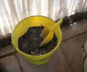 After just depositing fresh excrement in the toilet add one cup of mix of either 3 dirt to 1 lime or 3 dirt to 1 ash on the top. This mix helps avoid the presence of flies and eliminates odors. When the toilet is sealed in an environment without light, oxygen, or water this mix also helps chemically burn parasites in the excrement. BE CARFEUL not to add to much lime or ash if using the finished compost for fertilizer, since the mix can make the compost become too basic for use on most plants.[2]