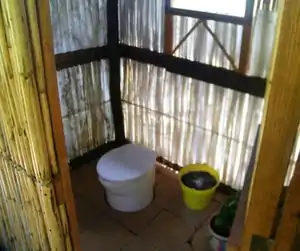 - These may be of the size, design and materials desired, provided that they meet common sense construction and safety principles. It is important to make sure this upper structure allows good ventilation while preventing the passage of water into the chambers. Pedregal included PVC venting pipes that run up the outside of the back wall of the structure in order to permit decomposing gases to escape to the outside where they will not disturb users. Pedregal's structure was made of bamboo mats woven together with small openings in the design to allow for ventilation, as well as with windows (above breast height to preserve modesty) that bring in light and release odors.[2]