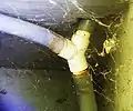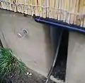 - Whether just the bare hole is used, or a toilet seat is included over the hole, the urine must be separated using a small triangle-shaped cup (or funnel) that has been attached to the underside of the slab, at the front of the hole, and that protrudes out into the hole far enough to capture excreted urine product. This triangular cup (or funnel) should have a small hole set in its bottom for the attachment of a tube via a hose clamp (worm drive screw tightened band clamp) that leads out to an underground external absorption chamber or other separate collection chamber, where it can be collected for use.[2]