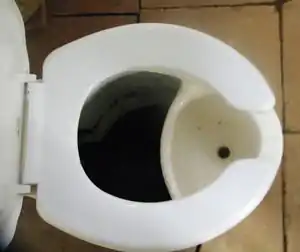 The special design allows the urine to be separated from the solid waste. The urine is lead to an absorption well dug close to the bathroom or it can be captured into a separate receptacle so that after it has been diluted in water it can be utilized as a fertilizer. Since urine has been found to contain about 88 percent of the N (nitrogen), up to 67 percent of the P (phosphorus) and up to 71 percent of the K (potassium) present in human excreta, it is a great application for fertilizer use. Also since most pathogenic organisms are found in the solid excrement it makes it easier to handle in reapplication. Urine can also make up the bulk of human waste systems, with humans producing half a cubic meter annually, producing enough with enough frequency to maybe become part of a regular fertilizer application program.[3] The solid excrement meanwhile enters the interior of the chamber that is in use.[2]