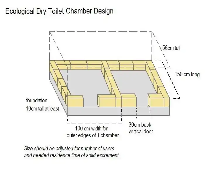 - Before using each of the cement chambers, deposit 5cm of dry dirt on the floor. While the chamber is in use organisms present in the dirt are introduced to the excrement and help to decompose the waste.