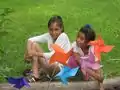 Wednesday, June 21: The girls drew the different fruits and vegtables that are growing in the garden, using colored paper and markers. This demonstrated and reinforced what is growing in the garden. They cut out their drawings and we punched holes in them and strung them on a string to hang behind the garden. It is now used to keep birds away from the plants in the garden. Lesson Plan: Wednesday, June 21st