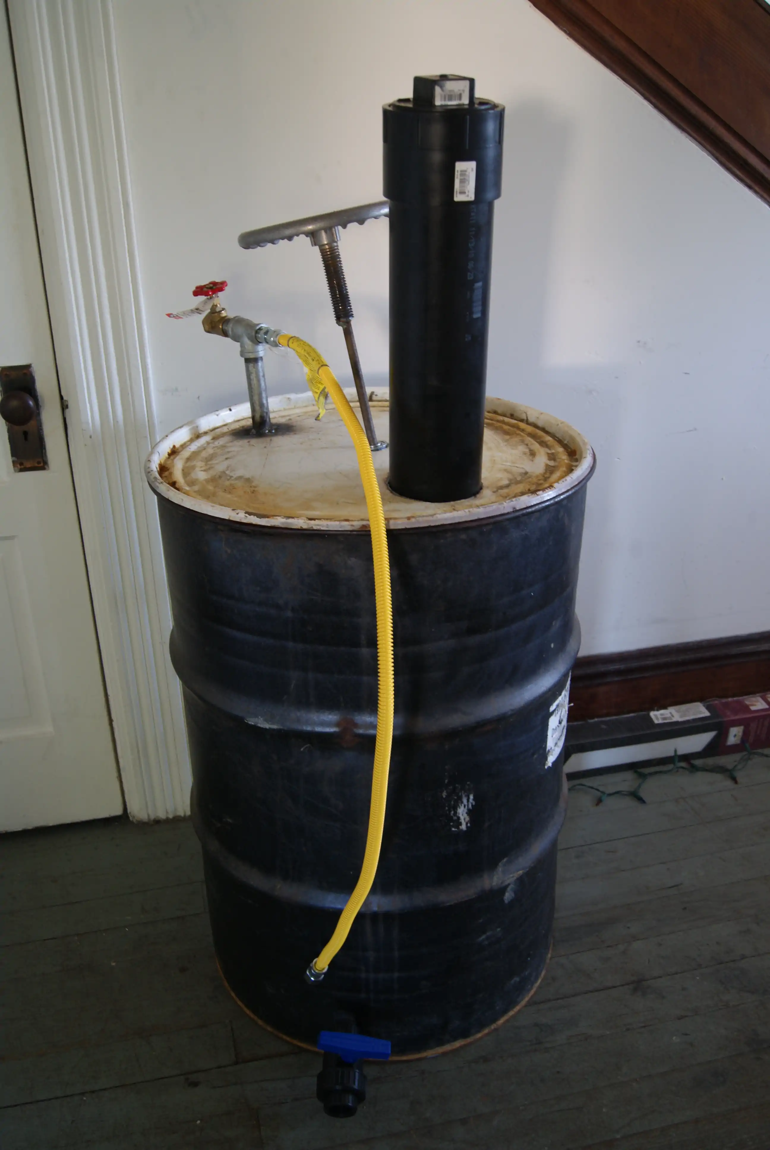 A rainwater catchment from the roof of the Mattole Valley Community Center in Petrolia