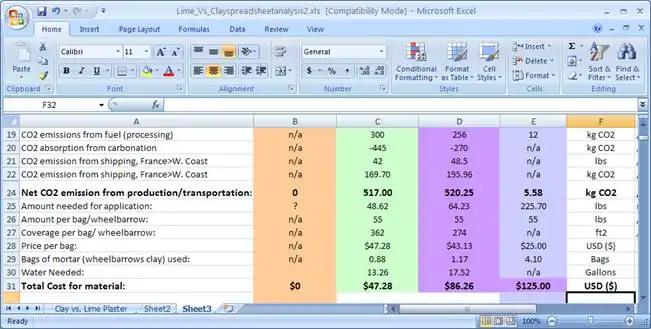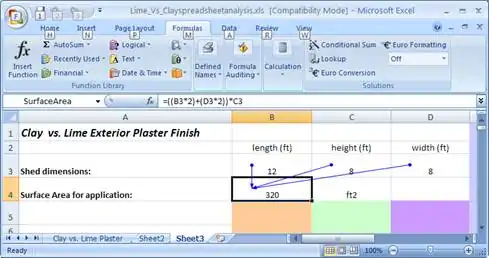 Instructions for using the Lime vs Clay Spreadsheet Analysis: