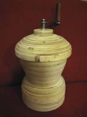 The prototype fully meets the design criteria in terms of ease of use/reuse. The handle turns smoothly and leaves enough space for the user to place a hand on the sheller for stability. Nutsy can be quickly opened by removing the handle from the square drive of the shaft and lifting the lid. Shelled nuts are readily accessed by removing the entire body from the base. The sheller can be quickly disassembled for cleaning or repair into six pieces: the handle, top, midsection, rotor, shaft and base. The prototype lacks the locking mechanisms described for the lid, body, and base. This has not been an issue since the wood components generate enough friction that they do not slip when the sheller is being used. The metering plate, viewing window and hinged door were also not included in the prototype.