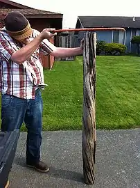 The driftwood used in the project was found on Clam Beach. The curvature and even bend made it a perfect selection for our support post.