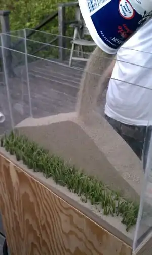 This is an interactive exhibit that demonstrates how the forces of nature contribute to the formation of sand dunes.