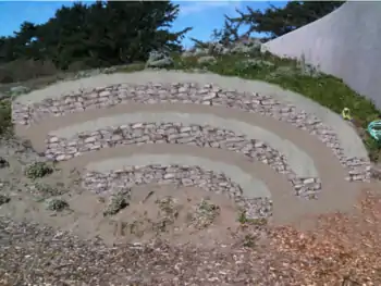 Back fill wall to the top of this wall with sand to create the wide walls of this amphitheater.