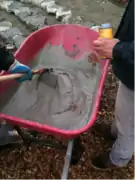 - Mix Mortar and add brown concrete dye. Dye should be added in a ratio of one bottle per two 60 lb bags of mortar.