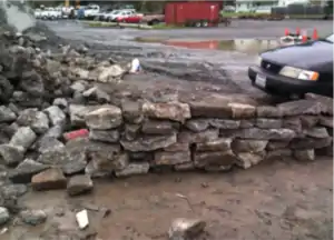 - Piece together wall by stacking retrieved Urbanite