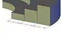 The Sandy Cove Amphitheater begins with three retaining walls constructed of stacked urbanite. The blocks of urbanite composing the three retaining walls are stacked in an offset manner to create a more structurally sound structure. These walls are then backfilled with sand. The first retaining wall is 16 inches high and each level of the amphitheater increases by that measurement as you move up the amphitheater. Each retaining wall is 3 feet wide. Each wall follows the same angle of curvature, which is of 137 degrees from a single, central point that is 5 feet in front of the first wall. The first wall has an arc length of 12 feet, the second wall has an arc length of 19 feet, and the third wall has an arc length of 26 feet. The mortar used in the construction of the amphitheater is concrete.
