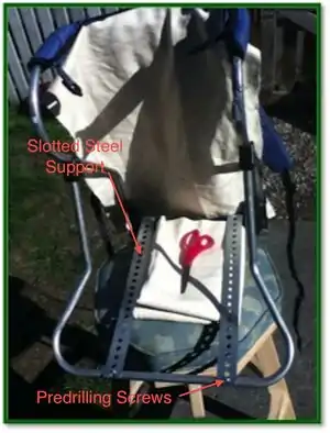 - Acquire a backpack frame. Add extra supports on the bottom of the frame to guarantee there is adequate support for the unit to rest. Measure the distance from the back of the unit to the front. Then, using metal shears, cut two piece of slotted steal to the specified length. Using pre-drilling screws attach the two pieces of slotted metal to the back and the front of the frame. One screw on each side should be adequate to hold the steel supports in place.