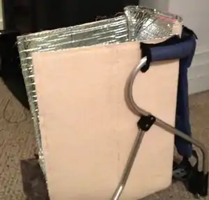 Figure 4: - Use reflective tape to cover any screws or staples that may have been used with the installation of the insulation, L brackets, and the hinges. Used silicone to seal the edges of the insulation at the top and bottom of the dehydrating box. (Photo by Leabeth Peterson)