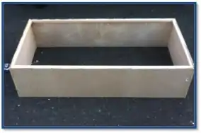 - Build the basic dehydrator box using wood glue and screws. Ours is 12"X49"X24". For use at home, any type of wood will do, but for our purposes we used pine due to weight constraints. (Photo by Leabeth Peterson)