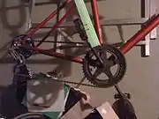 A small generator is attached to the rear gear setup of the bicycle. It then sends its power through a blocking diode to ensure that the current only flows to the battery and not away from it. A charge controller is also used to smooth out the current coming from the system to the battery, and also insures there is no chance of overcharging the battery.