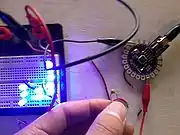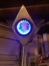 This page is about the Hyper Visible Power Meter. It was constructed for the Flock House Project in New York City by Team Stark Industries during the Fall 2011 Engineering 215 - Introduction to Design class at Humboldt State University. We were tasked with the creation of a meter to provide information about the energy storage system of the Flock House. This meter will be utilized daily by the Flock House for the duration of its travels around New York City. The meter serves as both an educational tool for the public as well as a tool for the artists living aboard by presenting an alert when power levels are too low.